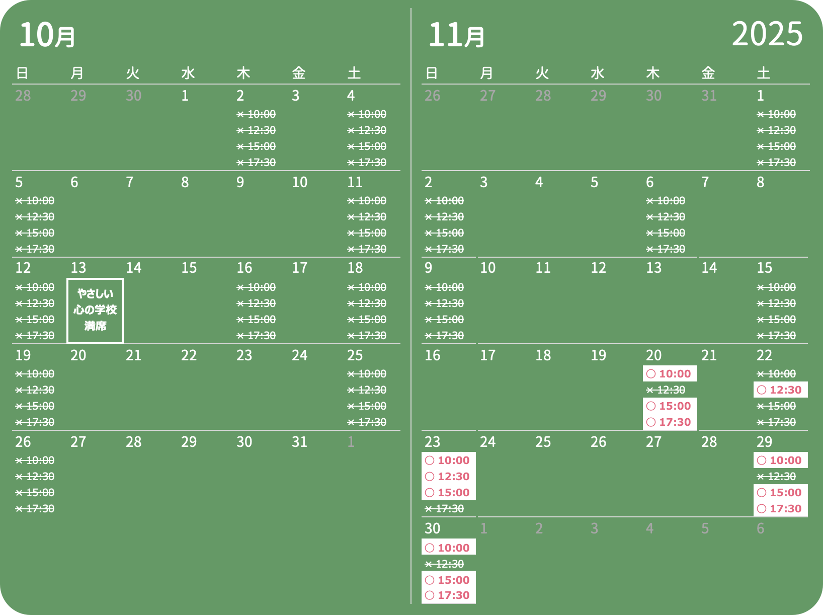 2025年12月分のご予約は、11月1日(土)12:00よりご予約受付が開始となります。