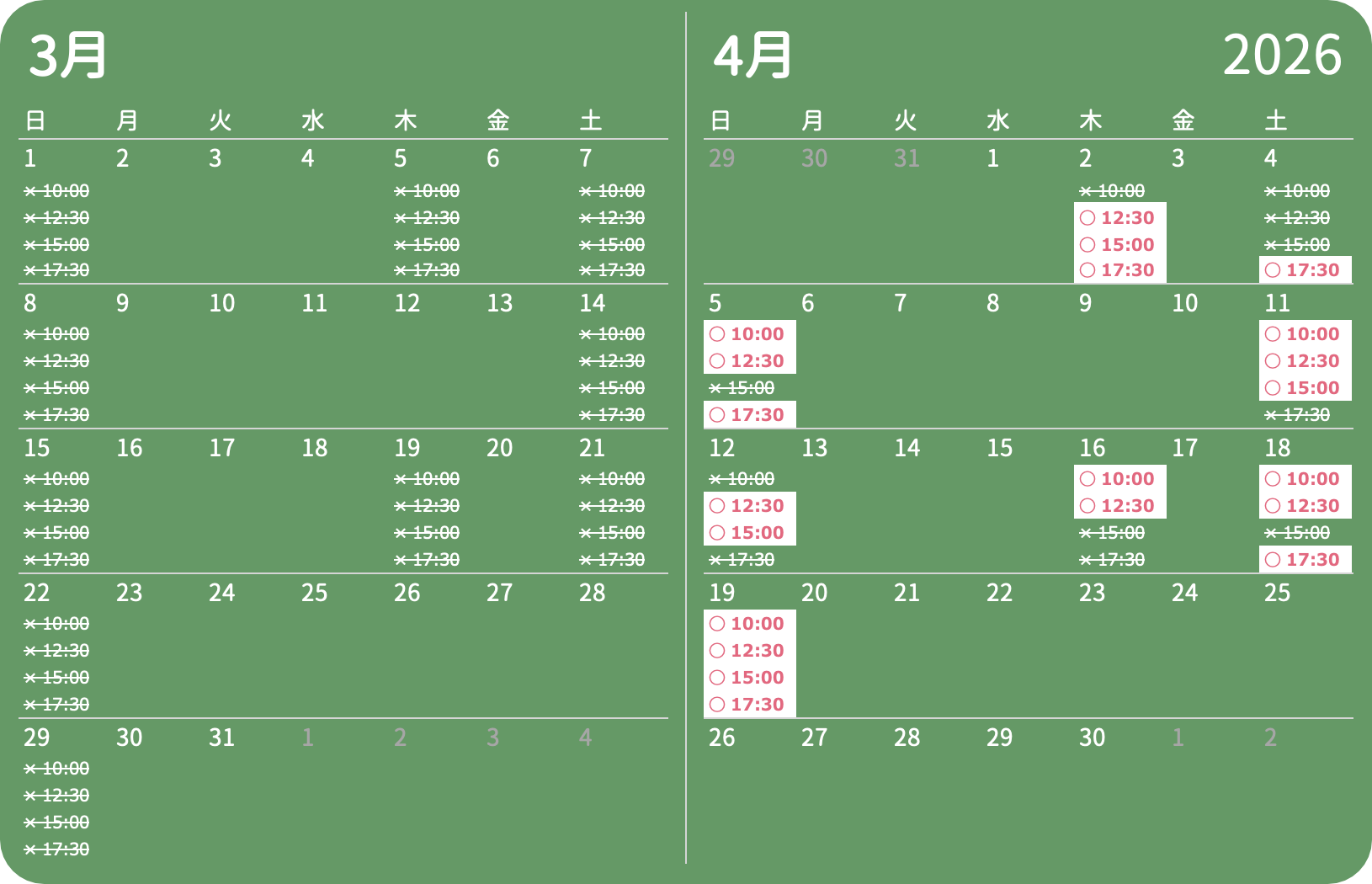 2026年5月分のご予約は、4月1日(水)12:00よりご予約受付が開始となります。