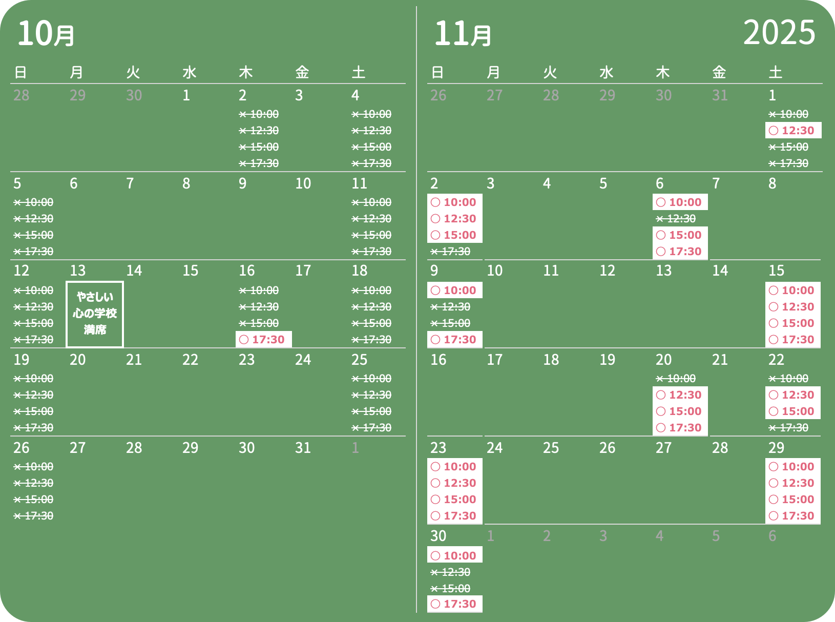 2025年12月分のご予約は、11月1日(土)12:00よりご予約受付が開始となります。