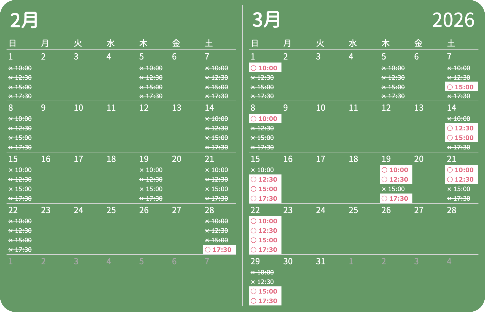 2026年4月分のご予約は、3月1日(日)12:00よりご予約受付が開始となります。